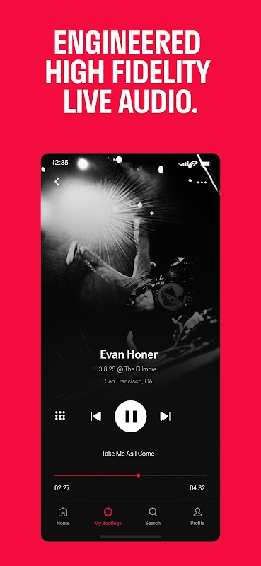 • Andare oltre magliette e poster. Bootleg ti consente di creare una libreria personale di ricordi di concerti dal vivo, mantenendo viva la magia per sempre.