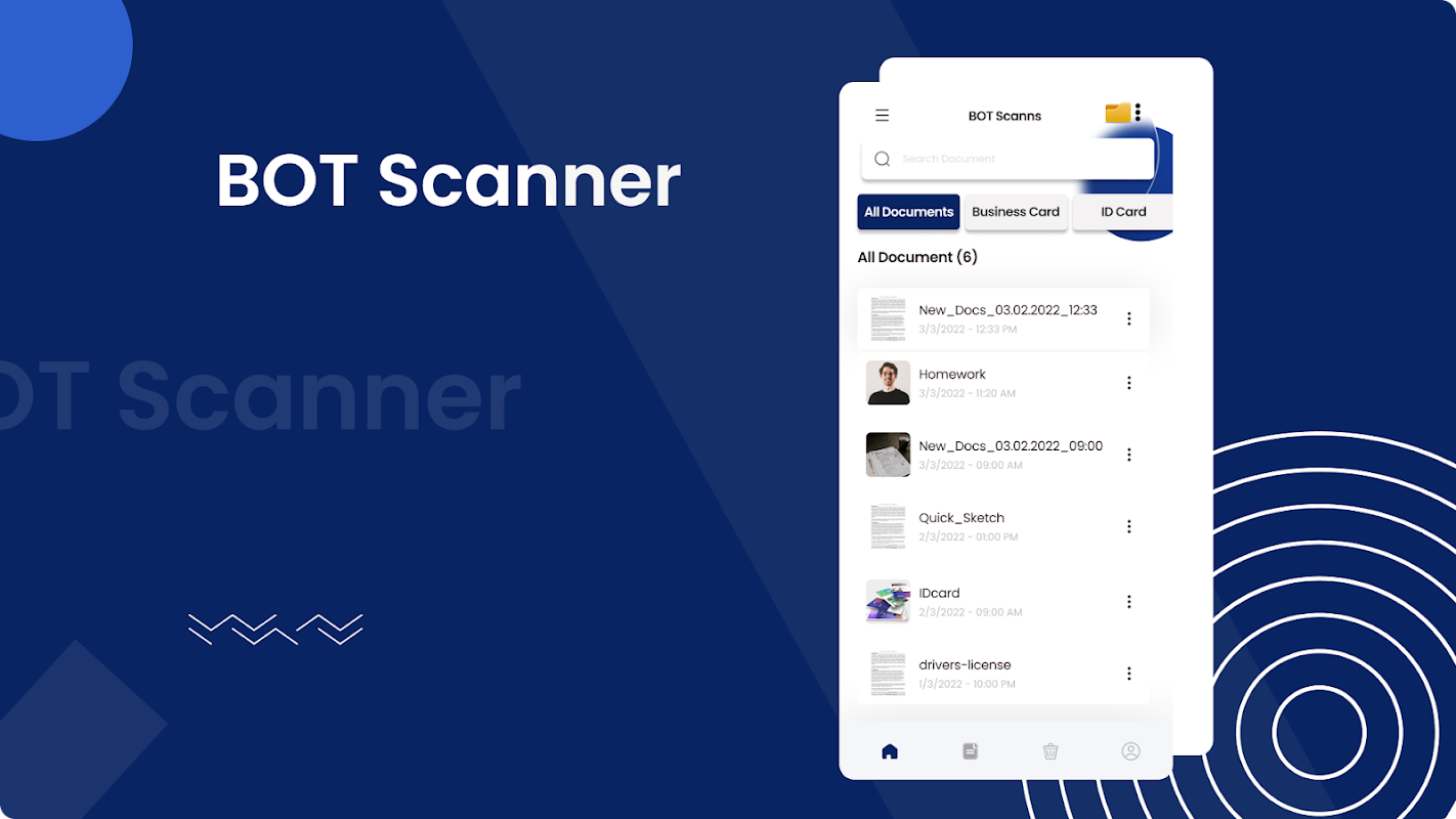 L'app BOT Scanner è la migliore per la scansione di documenti in formato PDF di alta qualità e output PNG. Scansione gratuita di immagini, documenti scritti, materiale grafico e documenti stampati. È inoltre possibile aggiungere immagini e foto per la scansione dal rullino fotografico tramite l'applicazione Doc Scanner. Scansiona rapidamente qualsiasi tipo di documento nel tuo ufficio o a casa come ricevute, appunti di classe, fatture, pagine di libri e qualsiasi cosa in pochi secondi. Ora la scansione dei documenti non è più difficile per te basta installare e scansionare i file. L'applicazione scanner PDF è necessaria per ogni persona se sei uno studente scolastico, uno studente universitario, uno studente universitario, un uomo d'affari o qualsiasi altra persona. BOT Scanner - Free Scan PDF & Image to Text è un'app molto semplice e veloce per scansionare foto in alta qualità e convertirle istantaneamente in formato PDF, PNG e JPEG in modo da poter condividere scansioni di documenti, note, riviste, articoli e qualsiasi tipo di carta che vuoi. Questa app scanner gratuita rende il tuo lavoro in ufficio più intelligente.