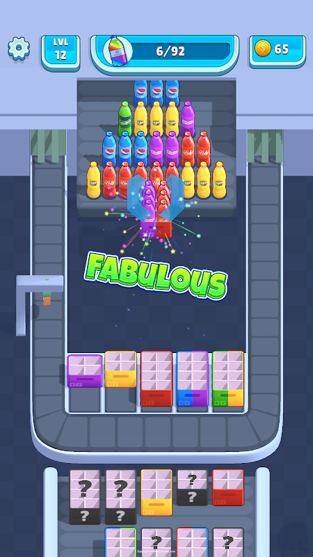Ordina le bottiglie colorate nelle casse! Una sfida di smistamento avvincente e difficile.
