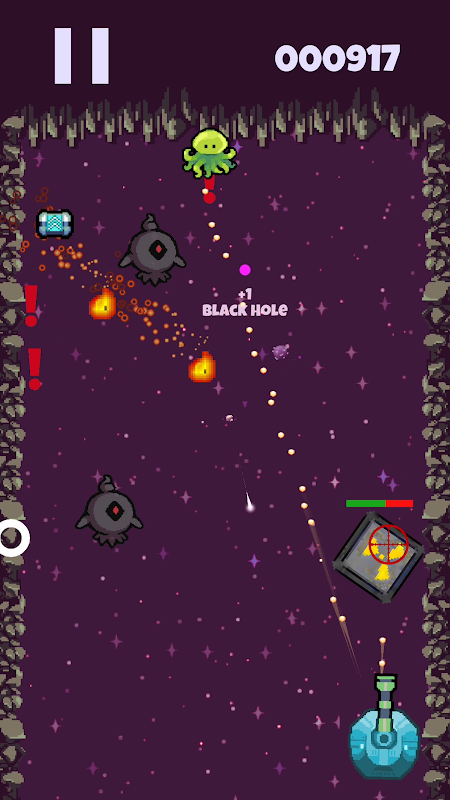 Use your turret to keep the box in the air but also use it to defeat enemies and collect powerups!