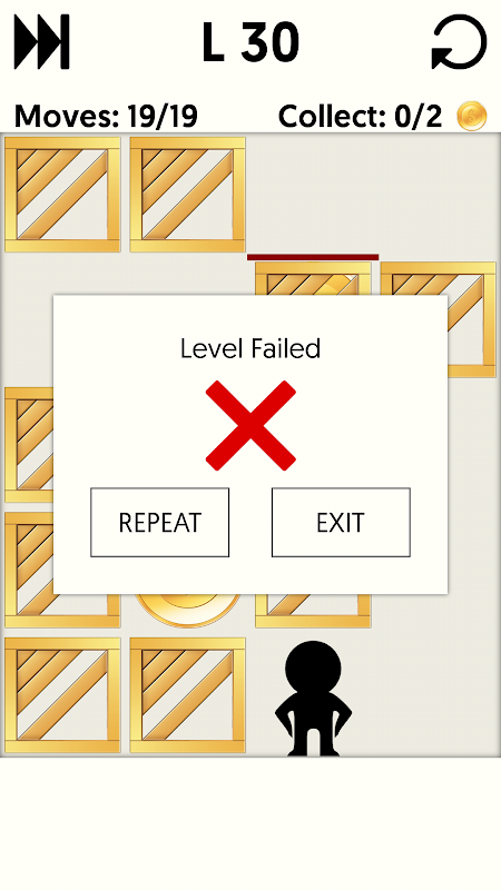 Move stickman to push boxes and collect all the coins in the maze!