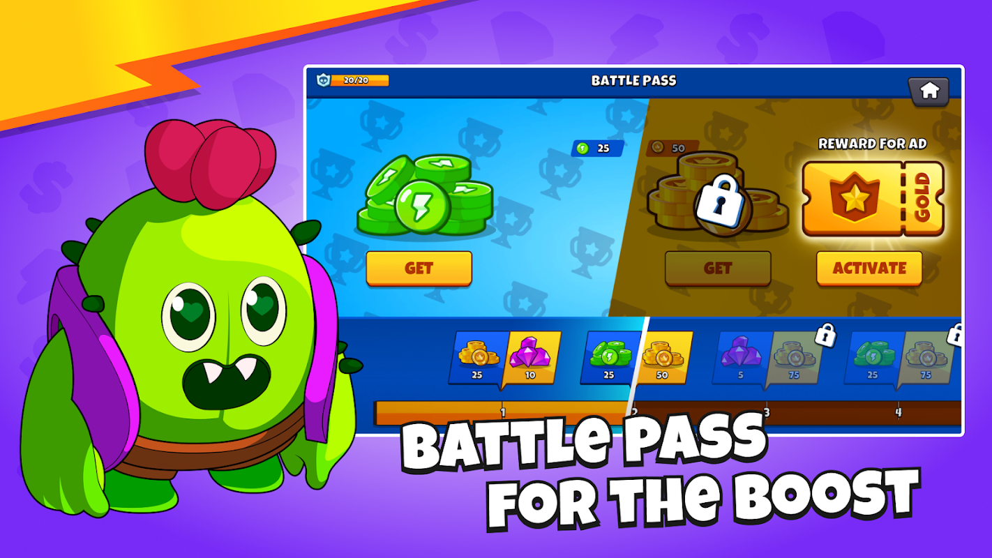 "Immergiti nel mondo delle battaglie multigiocatore dinamiche di Brawl Royale! Scegli tra un'ampia varietà di personaggi, ognuno con abilità uniche, e combatti in una varietà di modalità di gioco. Dalle battaglie a squadre 3 contro 3 alle modalità in solitario tutti contro tutti ed eventi e tornei speciali. Unisciti agli amici, crea clan e raggiungi la vetta delle classifiche globali. Aggiornamenti costanti, nuovi personaggi ed eventi entusiasmanti offrono divertimento e azione senza fine. Pronto per la battaglia?