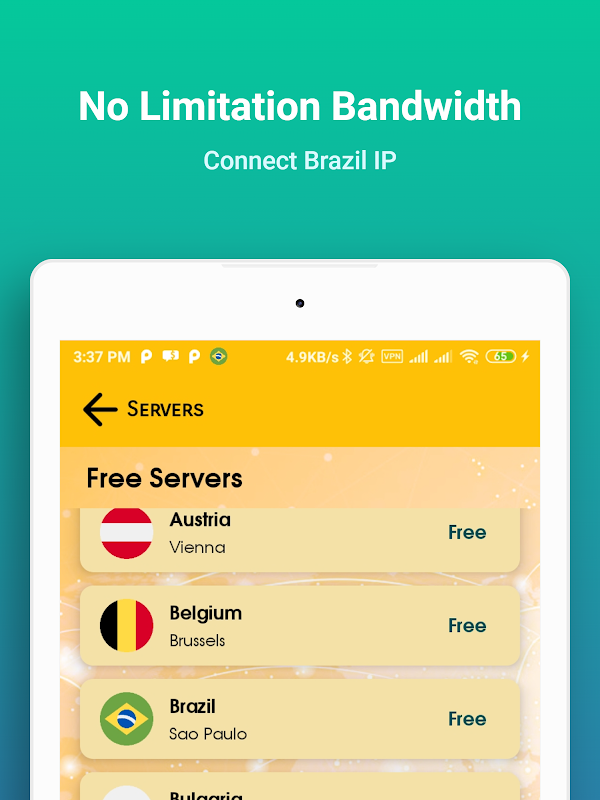 Scarica l'app VPN Brasile, una delle migliori VPN per Android disponibile per i tuoi telefoni e tablet Android. E stai tranquillo sapendo che sei completamente anonimo online.