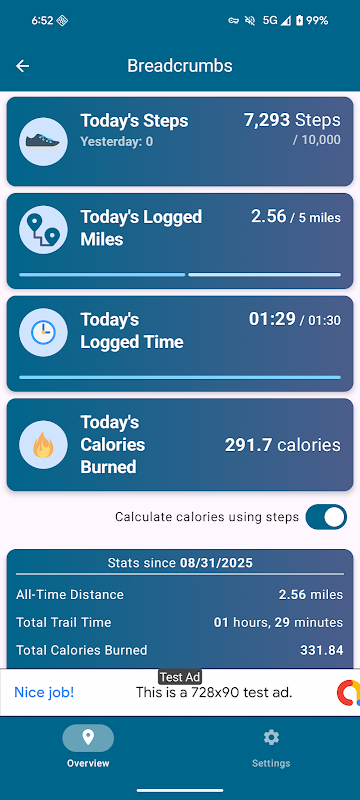 Visualizza lo storico delle attività sulla mappa, imposta obiettivi giornalieri e non perderti più mappando le tue escursioni con Breadcrumbs.