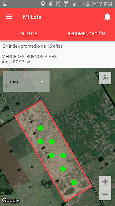 - MiLote: Integrazione con piattaforma web (milote.com.ar) per ottenere valori di produttività di ciascuna partita e l'ibrido raccomandazione impostato e densità.