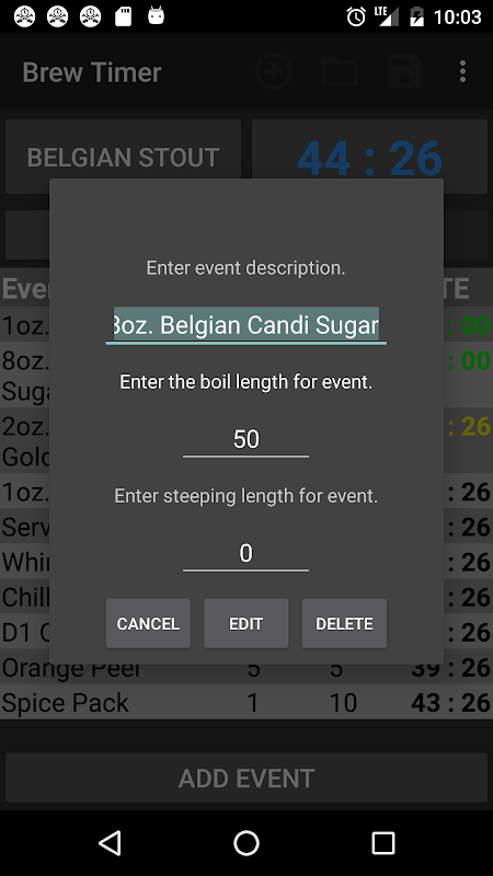 Il timer Brew è per birrai, professionisti e dilettanti, che hanno bisogno di un modo migliore per tenere traccia del loro birra durante il giorno birra. L'applicazione permette al produttore di birra di creare voci individuali per la sincronizzazione di diversi eventi di produzione di birra, come l'aggiunta di luppolo, spezie, un refrigeratore mosto, ecc Questi eventi possono includere anche un post-ebollizione tempo di macerazione, permettendo di birra per tenere traccia di lunghezze supplementari di tempo dopo ebollizione termina. Questi eventi possono essere raggruppati insieme come una sessione di Brew e possono essere salvati nella memoria del dispositivo in un profilo ricetta che possono poi essere caricato quando necessario per un utilizzo futuro. Ogni profilo ricetta contiene tutti gli eventi necessari per una sessione completa birra.