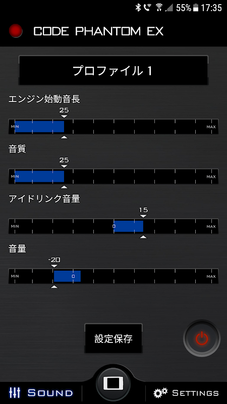 - システムのON/OFFや保存したサウンドの車内のスイッチ類での切り替え設定。