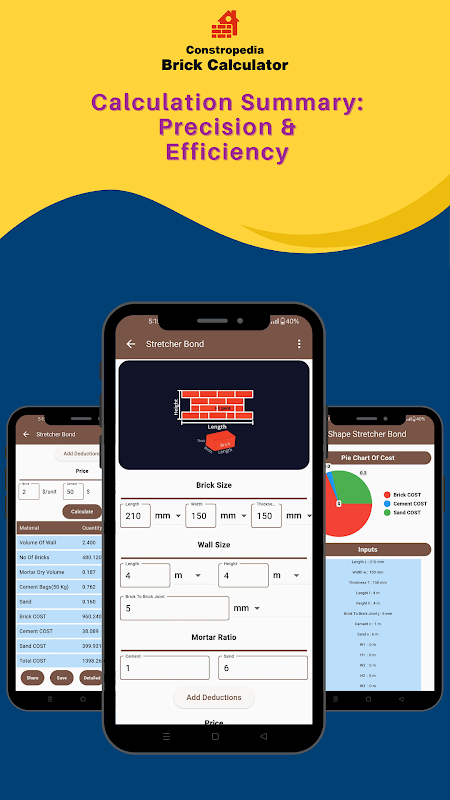 Brick Calculator è lo strumento definitivo per i professionisti dell'edilizia e gli appassionati del fai-da-te. Calcola facilmente la quantità di mattoni e intonaco necessari per qualsiasi progetto di costruzione. Progettata sia per i costruttori professionisti che per gli appassionati del fai da te, questa app stima rapidamente il numero di mattoncini necessari. Calcola il volume del muro, il numero di mattoni, il volume secco della malta, i sacchi di cemento, la sabbia e i costi totali. Condividi, salva i risultati, ottieni calcoli dettagliati e aggiungi al BOQ. La sezione Visti di recente consente un rapido accesso ai calcoli più recenti. Inserisci la dimensione del mattone, la lunghezza, la larghezza, lo spessore, le dimensioni della parete e il rapporto della malta per ottenere risultati precisi.