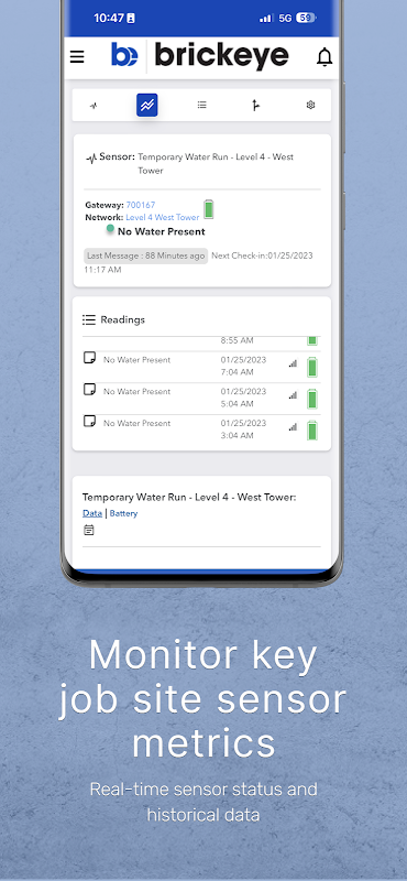 Brickeye è una piattaforma di monitoraggio e mitigazione dei rischi di costruzione che semplifica la riduzione dei rischi, aumenta la produttività e migliora la sicurezza sul luogo di lavoro. Questa app consente agli utenti di visualizzare e gestire i propri servizi di monitoraggio del sito di lavoro Brickeye a livello di progetto e di portafoglio, inclusi avvisi in tempo reale, dati storici e analisi utilizzando sensori e dispositivi IoT wireless. Scopri di più su brickeye.com.