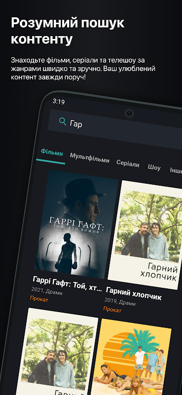 Accedi alle nuove uscite e alle anteprime mondiali, guarda i successi ucraini e le serie cult. Guarda serie drammatiche, commedie, film d'azione, thriller o documentari: per ogni stato d'animo. Scegli il genere, trova i tuoi attori preferiti e scopri nuove storie ogni giorno.