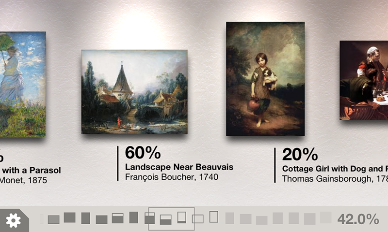 L'interfaccia è facile da usare e ti permette di esplorare le immagini ad alta definizione di dipinti classici: pizzicare per ingrandire, trascinare per scorrere l'immagine, e toccare per marcare le differenze.