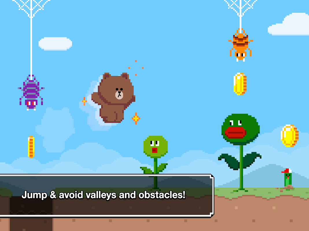 - Toccare lo schermo per far Brown saltare gli ostacoli!