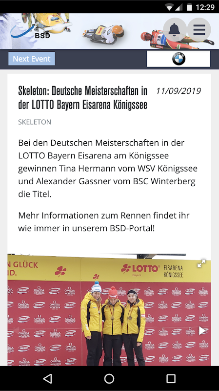 Immergetevi nel mondo di bob, slittino e lo sport scheletro. Lasciatevi affascinare da parte della comunità BSD di appassionati delle emozioni. L'applicazione BSD è un must per tutti gli appassionati di sport corridori nero, rosso e oro. informazioni aggiornate, interviste esclusive, interessanti rapporti di sfondo e molti molti fatti. Prendi il BSD applicazione gratuita, ottenere l'emozione, l'eccitazione e l'entusiasmo sul vostro smartphone.