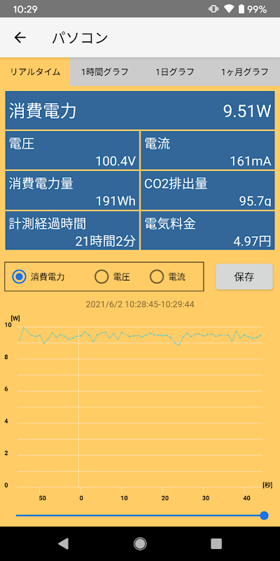 Come Ratoc watt consumo energetico checker, corrente, tensione misurata dal REX-BTWATTCH1 del sistema è un'applicazione che visualizza vari tipi di dati.