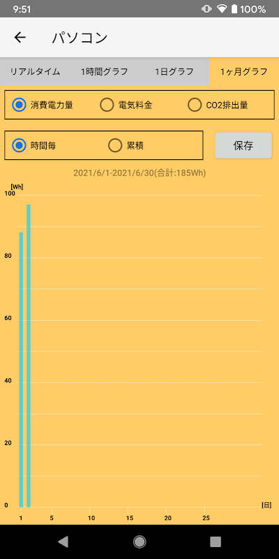 3) Visualizzazione grafica del consumo energetico in unità di 1 ora, 1 giorno e 1 mese
