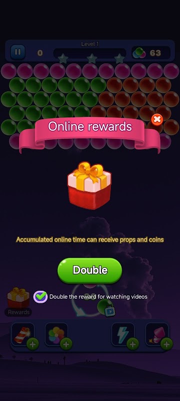 • Utilizza vari oggetti di scena potenti per eliminare in modo efficiente tutte le bolle.