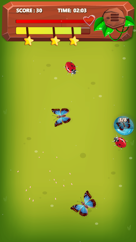 Il gameplay è semplicissimo: basta toccare gli insetti striscianti per schiacciarli. Inizi con 3 cuori: ne perdi uno se un insetto ti sfugge o se tocchi accidentalmente un insetto bomba.