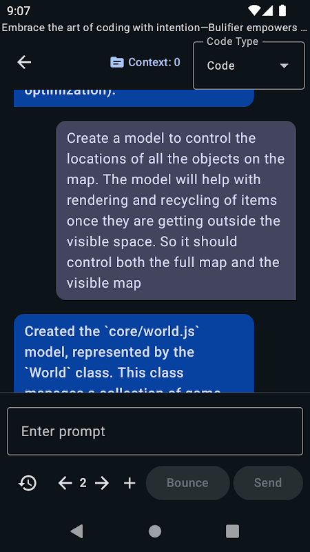 Trasforma le tue idee in realtà! Con Bulifier IA - Vibe Coding Hero, utilizza il potere del Vibe Coding per costruire app mobili e giochi direttamente sul tuo dispositivo. La nostra IA ti assiste in ogni fase, dando potere sia agli sviluppatori esperti che ai creatori in erba.