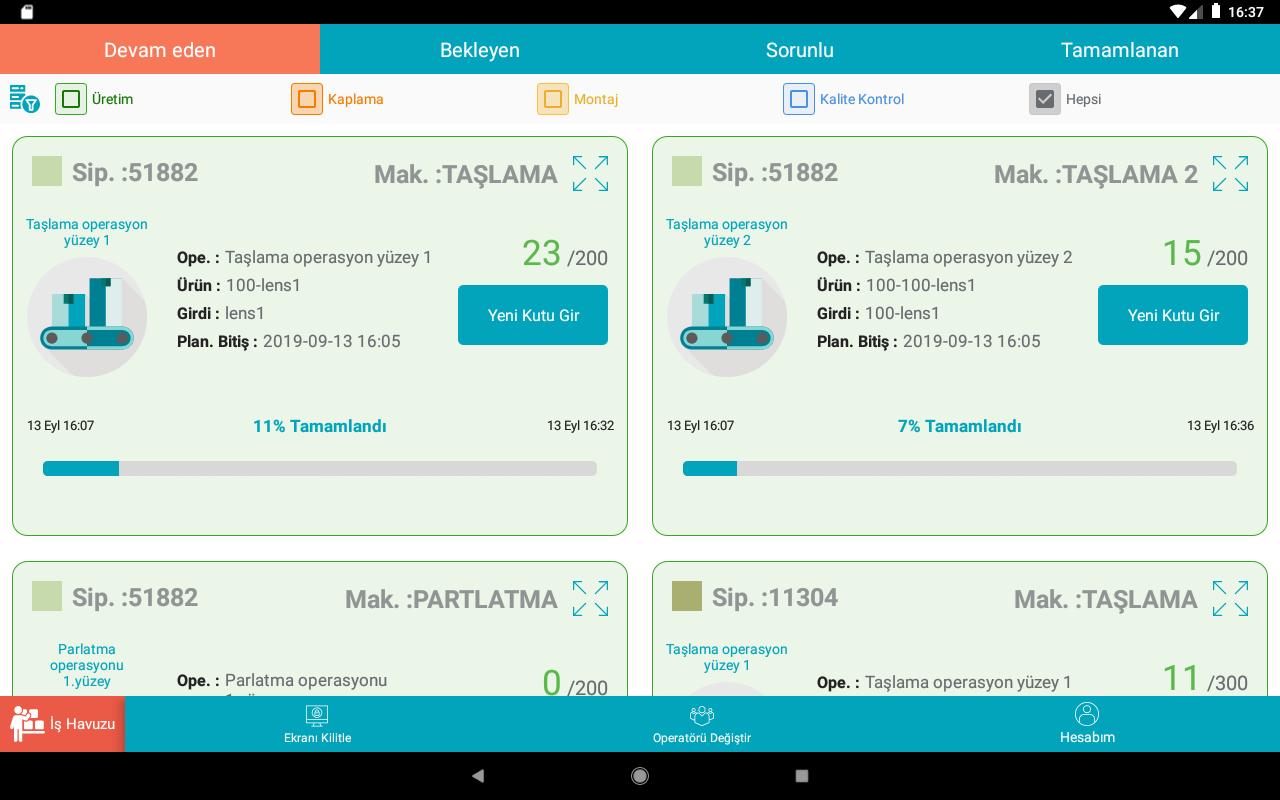 Üretim planlama, müşteri siparişleri durum takibinden, atölye iş takibi ve makine izlemeyi