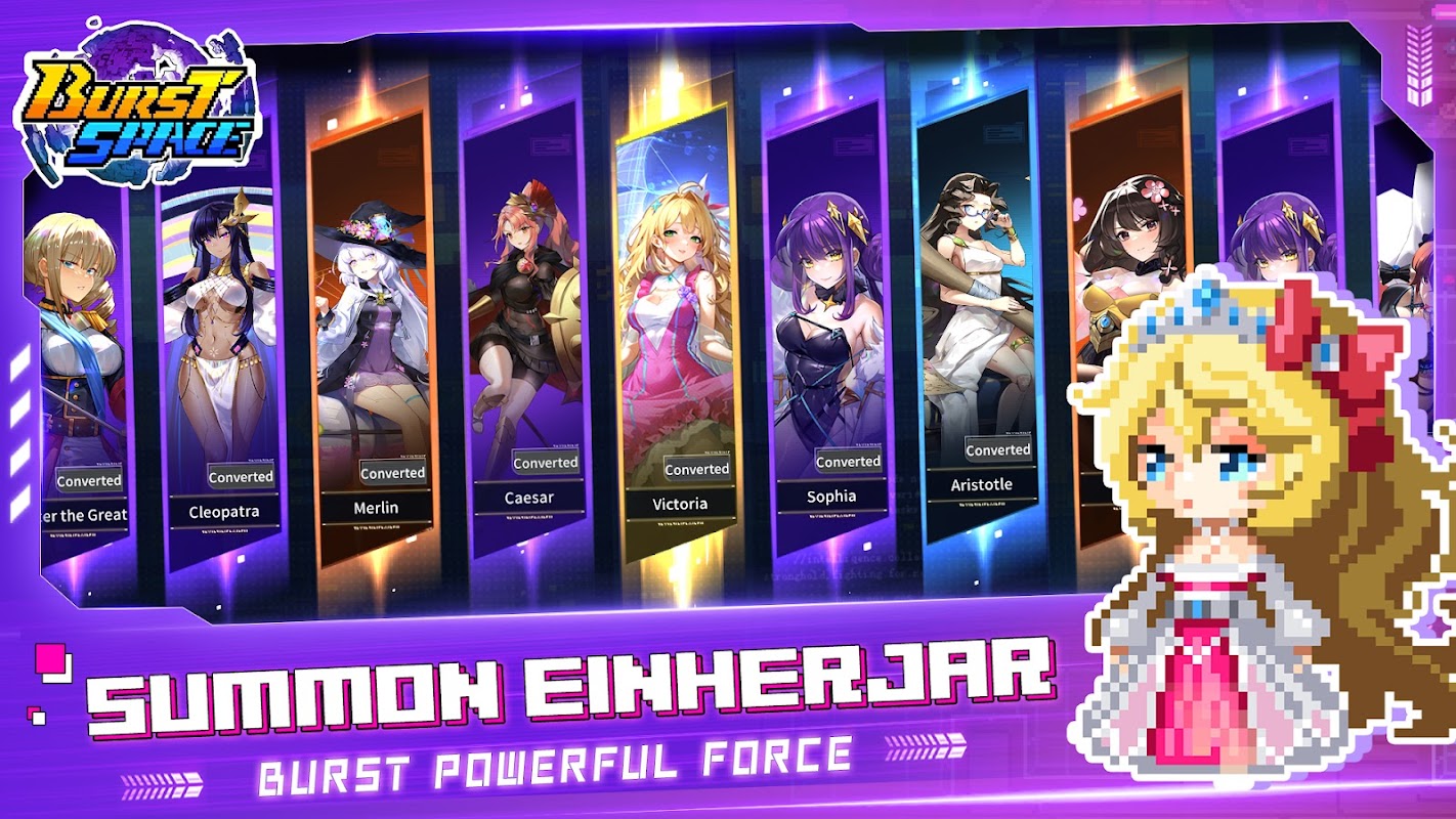 Parti per un'avventura pixelata in "Burst Space". Mentre ti doti dell'arma perfetta, intraprendi intense battaglie con orribili mostri, affina le tue abilità per sconfiggere i nemici e colleziona guerrieri Einherjar.