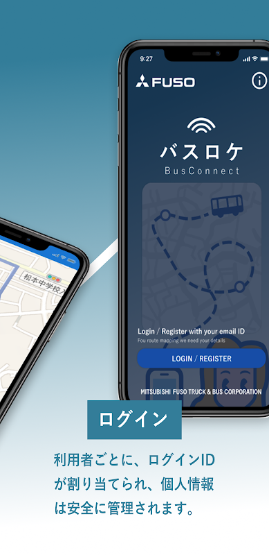 幼稚園バスやホテル・旅館のシャトルバスとして活躍するローザで、バスロケサービスが利用可能。