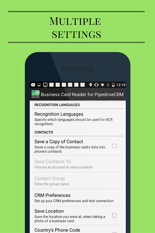 Lettore di biglietti da visita per Pipedrive CRM è la soluzione più semplice, veloce e sicura per trasferire le informazioni sui biglietti da visita cartacei ai sistemi CRM utilizzando la fotocamera dello smartphone. Scatta una foto di un biglietto da visita e l'app eseguirà immediatamente la scansione e l'esportazione di tutti i dati sulla scheda direttamente sul tuo CRM. Inoltre, questa app ti aiuterà a saperne di più su un potenziale cliente, partner o collega. È una delle migliori applicazioni per i sistemi CRM.