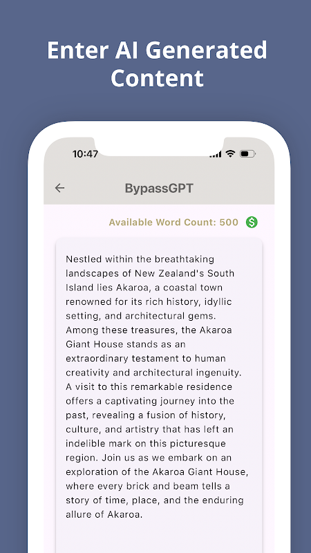 Riscrivi i tuoi contenuti generati dall'intelligenza artificiale con BypassGPT - AI Humanizer Tool. Questa potente app converte il testo generato dagli strumenti GPT in una scrittura naturale e simile a quella umana, rendendolo perfetto per blogger, scrittori, esperti di marketing e studenti.
