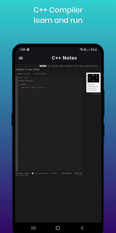 L'app "C ++ Notes" ha un'interfaccia utente molto semplice e interattiva. È la migliore app per imparare gratuitamente il linguaggio di programmazione C ++. Allora, cosa stai aspettando? Scarica subito l'app per diventare un esperto di linguaggi di programmazione C ++