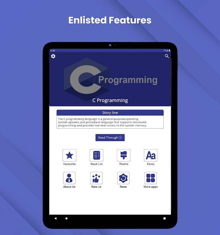 • L'app del linguaggio di programmazione C ha un'interfaccia molto intuitiva. Devi solo aprire l'app e selezionare l'argomento che desideri approfondire e verranno visualizzate tutte le risposte.