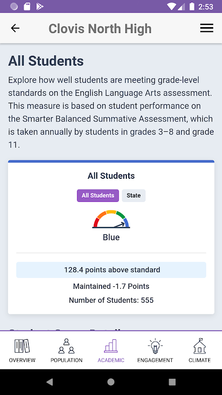 I californiani possono utilizzare l'app mobile di CA Dashboard per accedere facilmente alle informazioni in base al California School Dashboard. Il Dashboard è il nuovo sistema di responsabilità della California e aiuta i genitori e gli educatori a identificare punti di forza e aree di miglioramento. Attraverso il Dashboard, la California riporta in che modo distretti, scuole (comprese le scuole alternative che servono studenti ad alto rischio) e gruppi di studenti si comportano attraverso misure statali e rispondono a misure di indicatori locali.