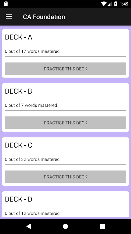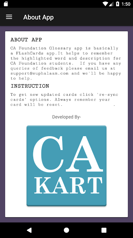 This App helps to remember the highlighted word and description for CA Foundation students.