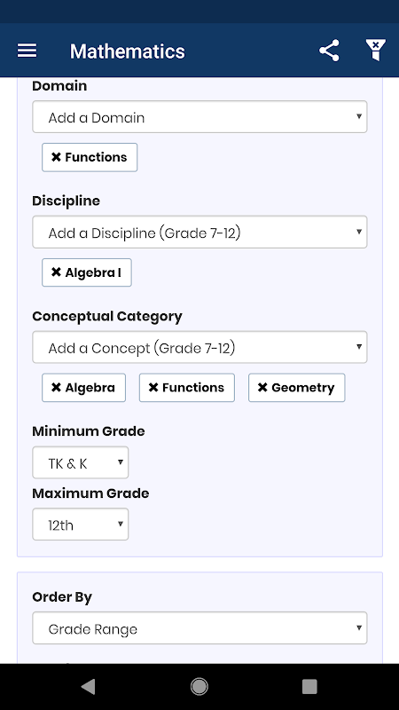 Gli educatori della California possono utilizzare l'app per dispositivi mobili per accedere rapidamente alle arti, alla formazione tecnica professionale, all'informatica, alle arti della lingua inglese, allo sviluppo della lingua inglese, all'educazione sanitaria, alla storia - scienze sociali, matematica, educazione fisica, biblioteca scolastica, scienze e lingue del mondo standard di contenuto su cui si basano per progettare le conoscenze, i concetti e le abilità che gli studenti dovrebbero acquisire ad ogni livello scolastico. Utilizza l'app per cercare, filtrare e ordinare gli standard per isolare contenuti specifici, identificare gli standard comuni a tutte le discipline e informare le decisioni in merito alle istruzioni e alla valutazione.