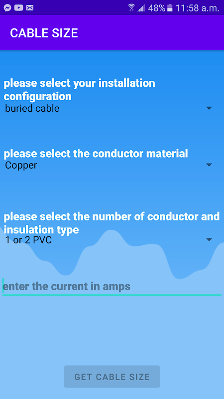 Questa semplice app consente di calcolare la dimensione del cavo per la tua installazione