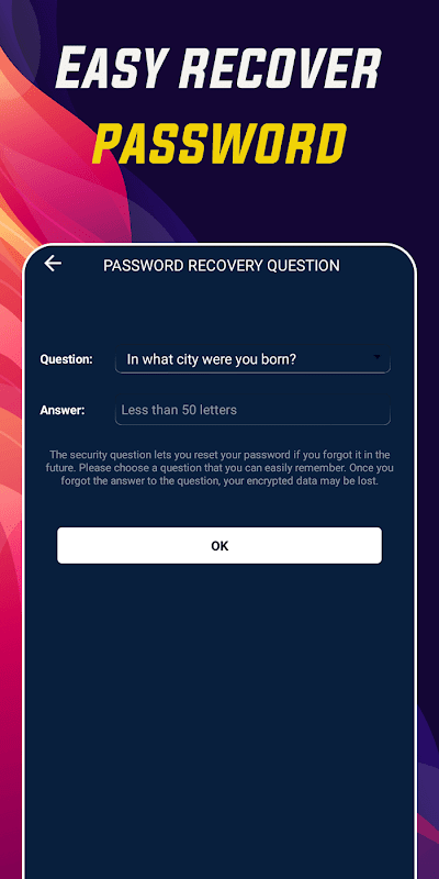 • Il sistema di sicurezza dell'applicazione è estremamente sicuro, utilizzando la password creata per accedere all'applicazione