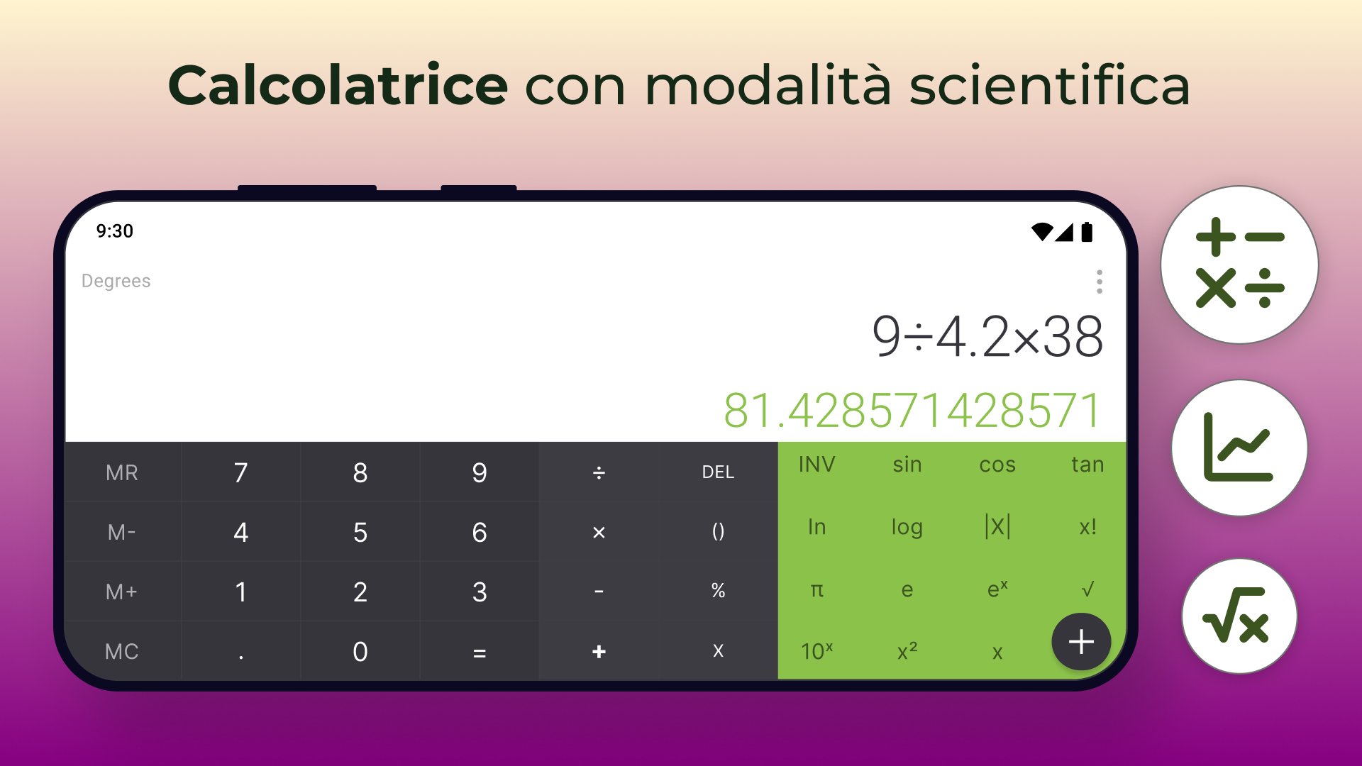 Facile da usare, elegante calcolatrice scientifica app.