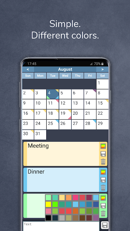 un triangolo con il colore appropriato apparirà accanto ad ogni giorno con una nota.