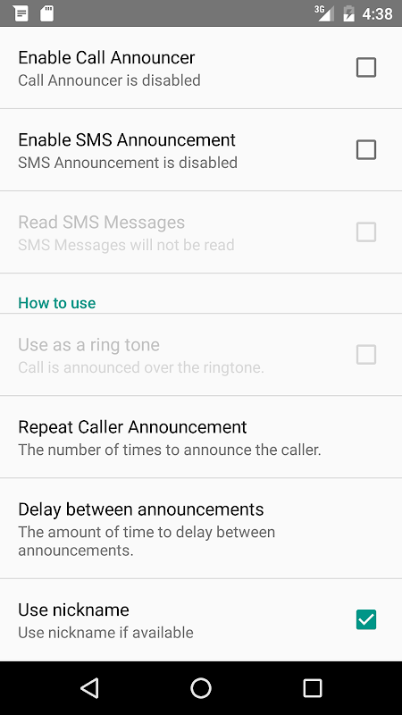 Call Announcer provides an audible caller id for all calls and SMS messages.