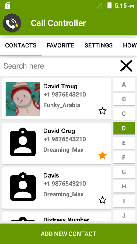 App is having functionality to mark any contacts as favorite. You can also add any contact as favorite from your own phone contact book.