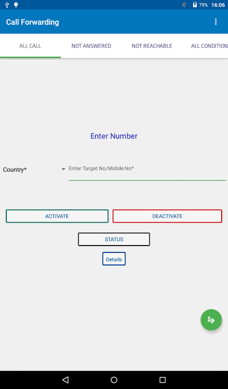 This application support call forwarding to all the GSM operators and also for various region. Forwarding call and diversion is a telephony service which redirects a incoming call to another target number, which may be, for example, a mobile telephone, voicemail box or another telephone number where the desired called party is available.