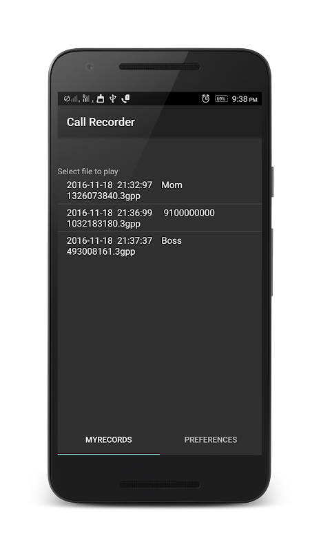 And all recorded call will be save in call log. When we click on call log button we get a list of recorded call.