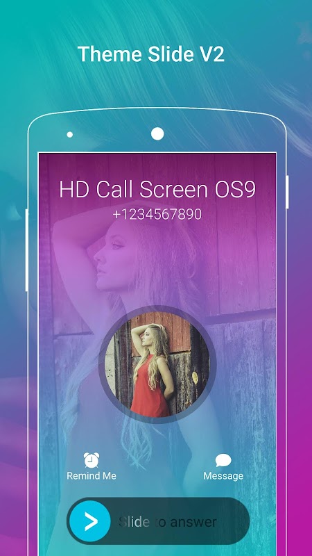 This theme Slide V2 belongs to HD Phone 6 i Call Screen OS9, please download it here at first: https://goo.gl/b3KvPB