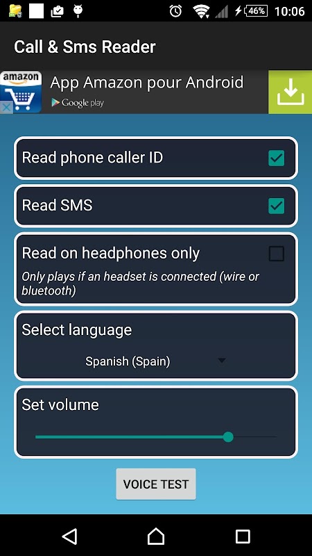 The widget allows you to switch between the 4 modes: Read voice call only, SMS only, both, or disable the app.