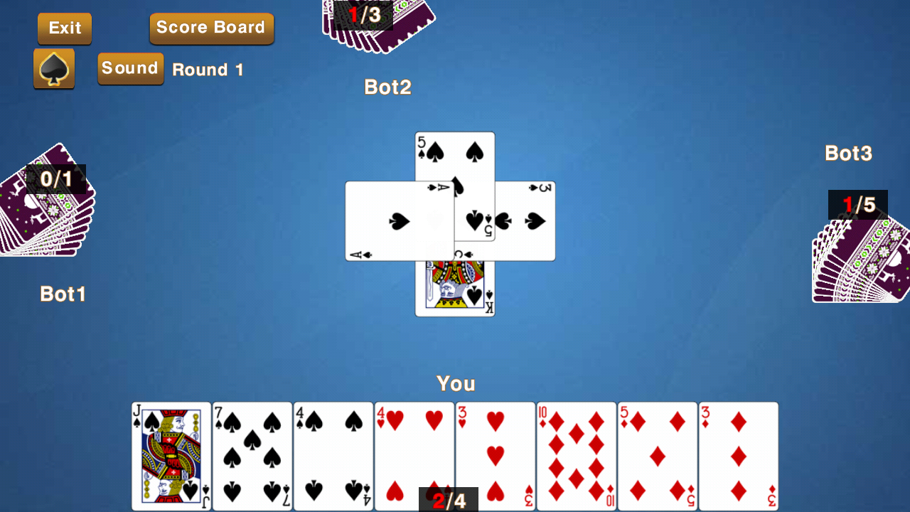 Call Break è un gioco di carte strategico basato su trick giocato da quattro giocatori con un mazzo standard di 52 carte da gioco. Ci saranno cinque round in una partita. Partendo da una partita con un bid / call, un giocatore può competere contro 3 giocatori di computer con un'intelligenza artificiale efficace. Iniziare una partita lanciando una singola carta di qualsiasi seme (mazza, diamante, cuore, picche), gli altri giocatori seguono lo stesso seme, a meno che non finiscano quel particolare seme. L'assenza di seme identico consente al giocatore di lanciare una carta di un altro seme e il round corrente viene vinto dalla carta più alta. Le carte vanga possono essere usate per conquistare altre carte quando non ci sono più carte dello stesso seme da offrire.e.g. 2 di vanga può conquistare carte più alte di altri semi. Se tutti i giocatori esauriscono sia il seme identico sia la carta Picche, la carta principale vince indipendentemente da qualsiasi seme.
