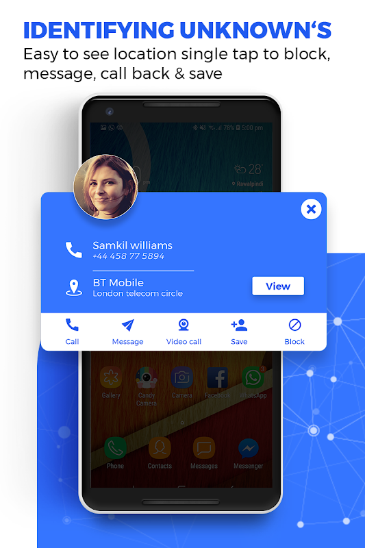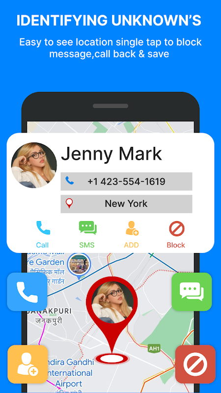 Hai ricevuto telefonate da un numero sconosciuto? Vuoi trovare la posizione dell'ID chiamante? Vuoi avere uno strumento di ricerca del numero di telefono per ottenere le informazioni dettagliate del numero ID chiamante? Il vero localizzatore di numeri di telefono soddisferà tutte queste esigenze e mostrerà l'ID del chiamante. True Caller ID Name individuerà e mostrerà la posizione del numero del chiamante e lo visualizzerà sulla mappa GPS (non forniamo la posizione senza il consenso dell'utente e non forniamo la posizione fisica). Showcaller ID mostra informazioni come il fornitore di servizi del numero di telefono, i tipi di numero di telefono e la posizione del numero di telefono come in quale paese e stato.