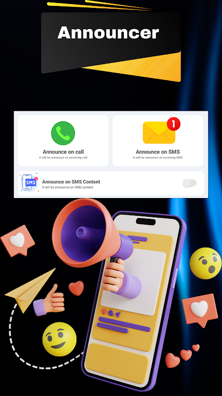 "Caller Name Announcer" app features :Caller ID Announcer, SMS Speaker and Message Announcer, Caller Name for Whatsapp, Battery Announcer, Flash on Call