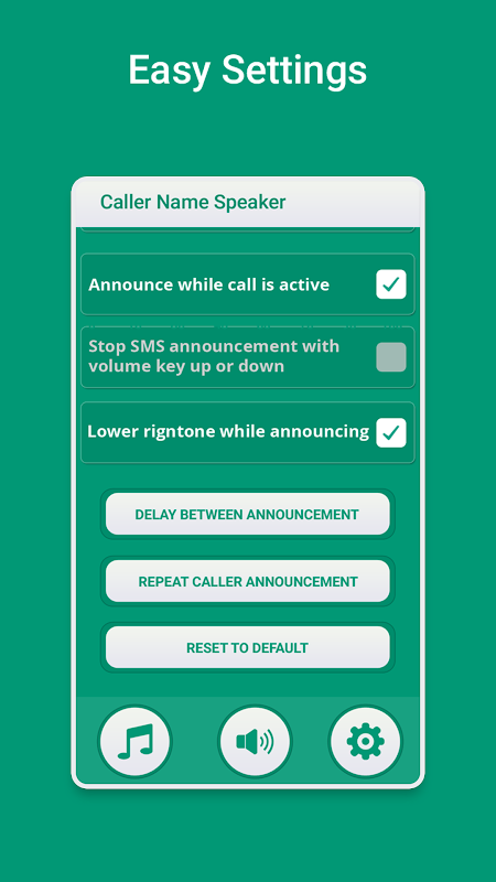 L'applicazione può essere personalizzata in base alle esigenze dell'utente. Con questo avviso del nome del chiamante è possibile ottenere immediatamente annunci verbali di qualità e immediati, poiché l'app dice il nome del chiamante in modo rapido e chiaro.