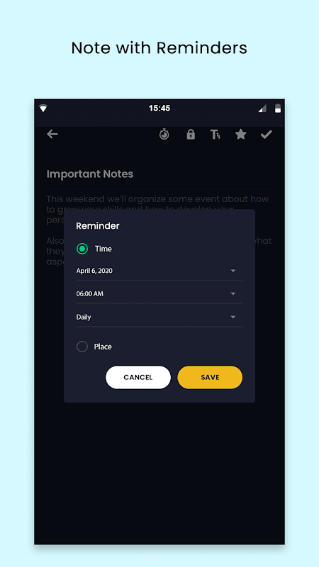 - You can set reminders and according to your selected date & time you will get its notification. From the Reminder option you can also see your previous and upcoming reminders.