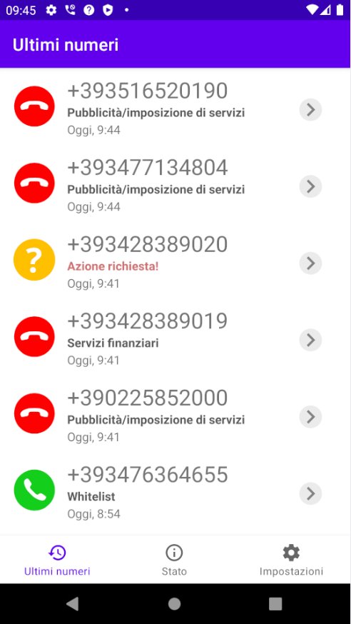 • Chiamate da numeri nella tua blacklist personale (supporto per jolly/wildcard, opzionale)