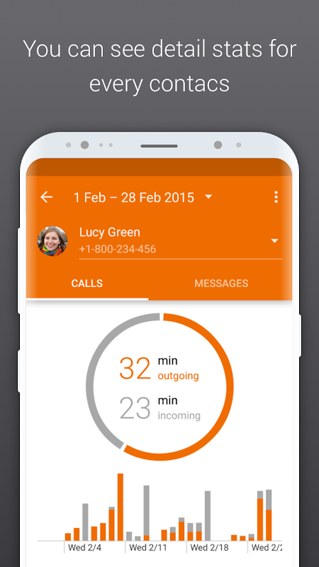 📈 Comprehensive views: Information about mobile data usage are visualized on calls, messages and data usage charts,