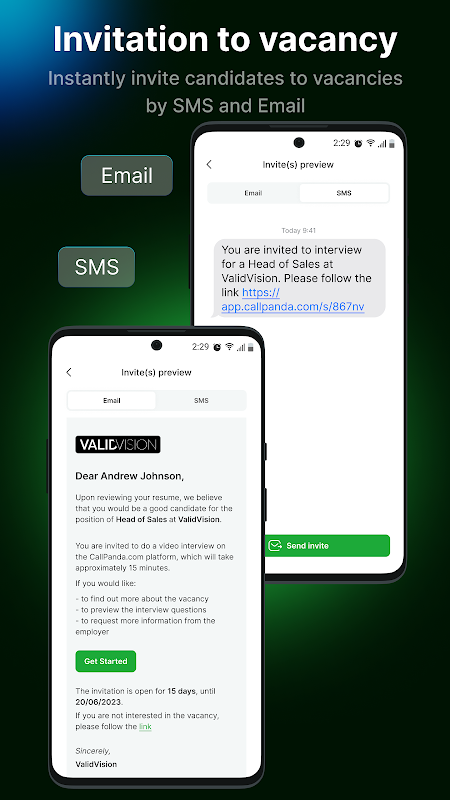 • Invita il tuo pool di candidati ai colloqui con un solo clic (sms ed e-mail)